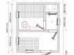 В комплект бани входит стол и две скамейки из доски 19мм, как на фото. Есть комплекты из более толстой доски а также из кедра, смотрите в доп комплектации.