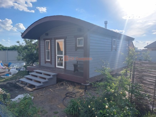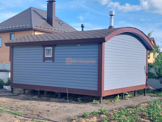Для строительства красивой бани 3.4х5 метров СК Смирнов разработал проект №223 с обустроенной парной и комнатой отдыха. По планировке общая площадь составляет 17 квадратных метров. Мы строим бани под ключ с полной отделкой снаружи и внутри.