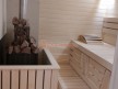 В бане из кедра не стоит обшивать стены вагонкой, так как кедр выделяет очень мало смолы и это не помешает пользоваться комфортно баней, потолок обшит кедровой вагонкой. Пологи из кедровой доски.