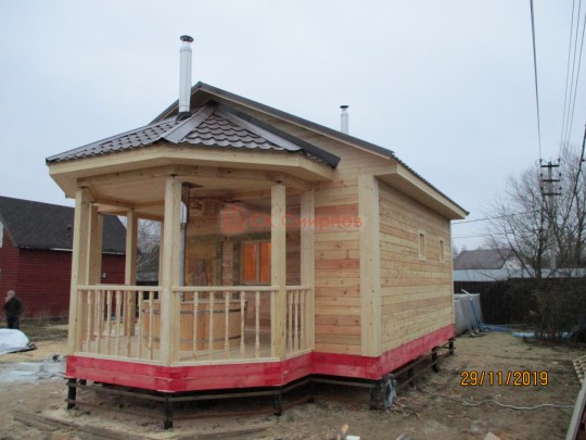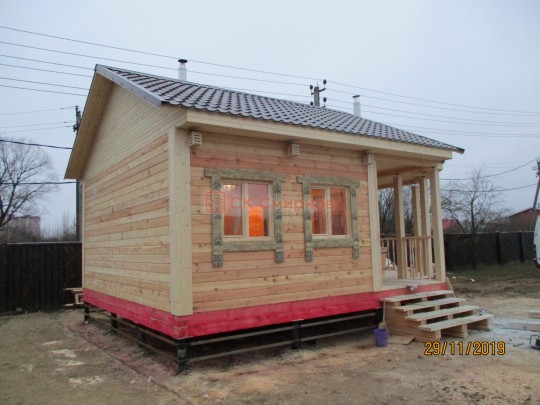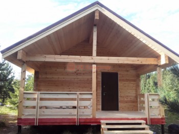 Такая одноэтажная баня 6х8 может быть построена из любого типа бруса. Ориентировочный срок строительства 21 день.