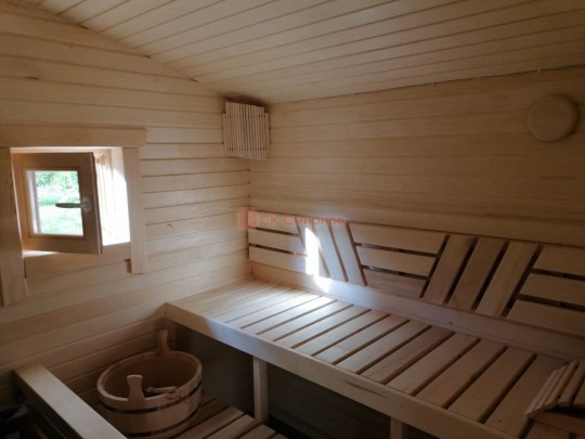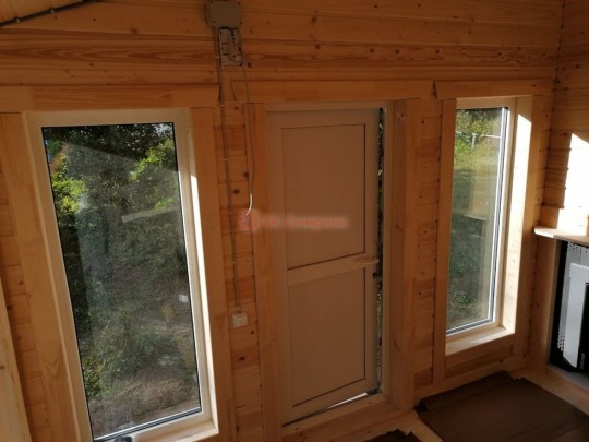 В данной бане мы используем окна вытянутой формы не открывающиеся по умолчанию, но можно за небольшую доплату сделать их открывающимися.