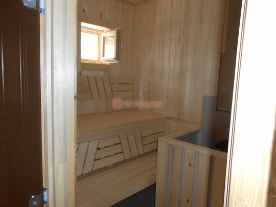 На первом этаже есть парная, душ, санузел, общая комната, а на втором этаже расположена спальня.
