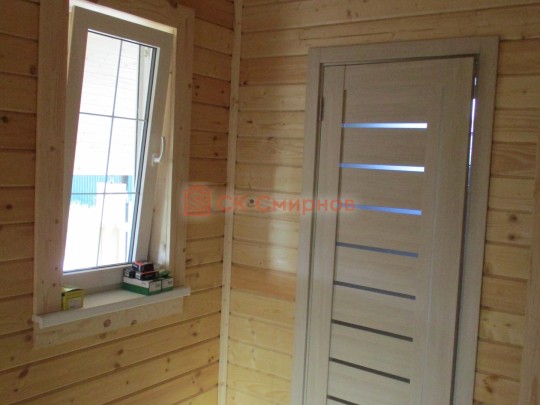 Обязательный элемент брусового дома или бани, это брусок в пиленный в брус в проем двери или окна не менее 50х50мм. Обязательно должен оставаться зазор сверху на усадку и этот брусок не должен быть жёстко закреплен в проеме. В некоторых случаях внутри помещения ставим металлические ройки, уточняйте. Посмотрите отрывок видео как могут повести себя стены