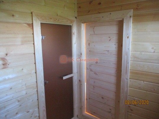 Именна та баня на фото и видео была построена в июне 2020 из клееного бруса 140х190 под ключ. Стоимость проекта составила около 1 млн руб. Подешевле будет построить такую баню из сухого бруса или даже из бруса естественной влажности, но в этом случае с отделкой придётся подождать 1-2 года.