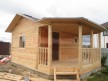 Терраса необычайно привлекательной формы дает своему обладателю широкий спектр возможностей: здесь можно установить небольшой мангал и садовую мебель, для полноценного отдыха между принятиями банных процедур. Для вечерних посиделок террасу можно украсить цветами и небольшой прозрачной гардиной, таким образом, вы создадите великолепный уголок, в котором можно будет послушать пение птиц или стрекотание кузнечика.