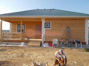 Из профилированного клееного бруса 9х14см, 14х14 см или 14х19 см. Сборка сруба в теплый угол на нагеля или гвозди 200 мм со сверлением отверстия в верхнем брусе (в зависимости от вида бруса).