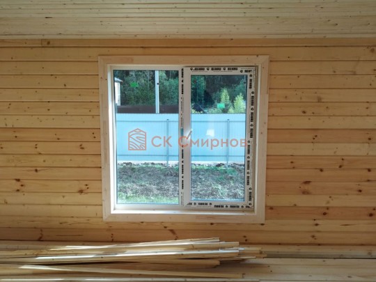Обязательный элемент брусового дома или бани, это брусок в пиленный в брус в проем двери или окна не менее 50х50мм. Обязательно должен оставаться зазор сверху на усадку и этот брусок не должен быть жёстко закреплен в проеме. В некоторых случаях внутри помещения ставим металлические ройки, уточняйте. Посмотрите отрывок видео как могут повести себя стены