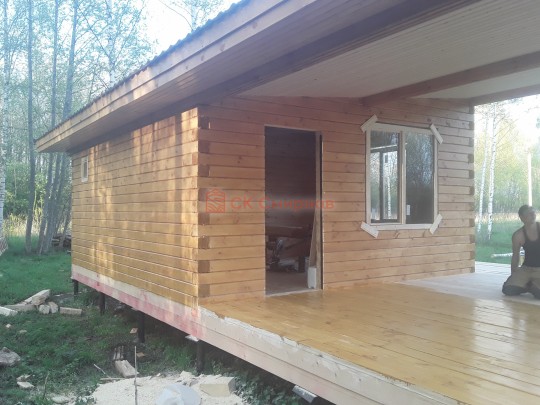 140х190Из профилированного бруса естественной влажности 9х14см, 14х14 см или 14х19 см. Сборка сруба в теплый угол на нагеля или гвозди 200 мм со сверлением отверстия в верхнем брусе (в зависимости от вида бруса).