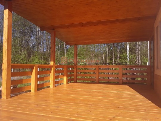 На террасе при условии что она есть делаем перила из строганной доски со всех сторон, столбы террасные также строганные, а не обрезки профилированного бруса с шипом и пазом. Домкратики на столбах для дальнейшей регулировки. Балясины будут сделаны аккуратно. Обратите внимание что в дешёвых случаях это может быть и будет просто вагонка прибирая к неотесанной доске снаружи и столбы будут не квадратные а просто профилированный брус как на видео.