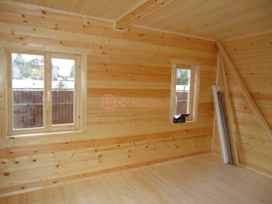 140х190Из профилированного бруса естественной влажности 9х14см, 14х14 см или 14х19 см. Сборка сруба в теплый угол на нагеля или гвозди 200 мм со сверлением отверстия в верхнем брусе (в зависимости от вида бруса).