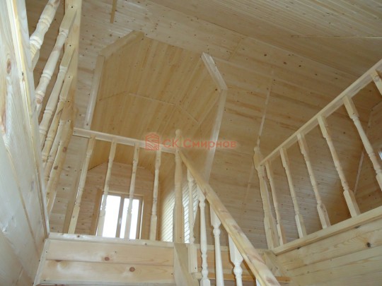 Потолки, стены вансардного каркасного этажа ( если он есть ) обшиваются сухой вагонкой.