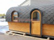 Для строительства деревянной бани 2.4х5.7 метров СК Смирнов разработал проект №144 с обустроенной парной и комнатой отдыха. По планировке общая площадь составляет 13.7 квадратных метров. Мы строим бани под ключ с полной отделкой снаружи и внутри.