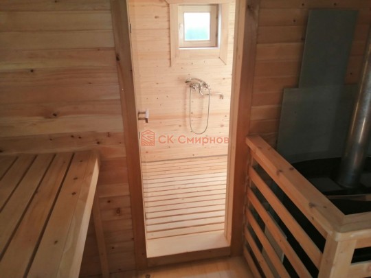 В помывочной устанавливается бойлер, бак, насос, смеситель, одним словом полный комплект чтобы принимать душ даже без центрального водоснабжения.