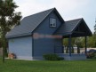 На фото представлен проект красивого каркасного дома с мансардой №258 габаритами 7х10 метров и отличной планировкой общей площадью 85 квадратных метров. Можно выделить несколько особенностей проекта: терраса, веранда, туалет, ванная, санузел, панорамные окна. Дом может использоваться как зимний для постоянного проживания.