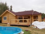 Мы умеем и иногда делаем дома и бани из сухого или клееного бруса с углами в чашу, это немного дороже, но выглядит эффектнее.