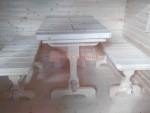 Для бани дополнительно можно заказать комплект добротной и красивой мебели — стол и 2 скамеечки. Мебель изготавливается на нашем производстве — она крепкая, не шатается (в отличие от фабричной, которую мы заказывали раньше). По договорённости можно сделать индивидуальный размер.